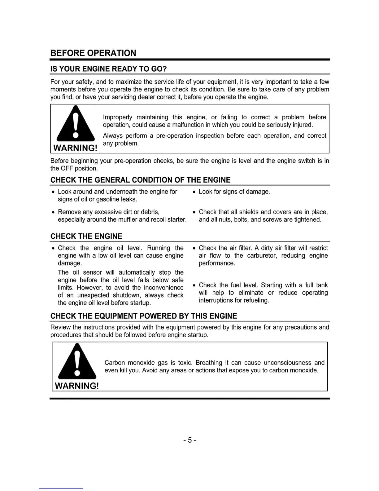 jiangdong JF120 - Before Operation; Check the Engine