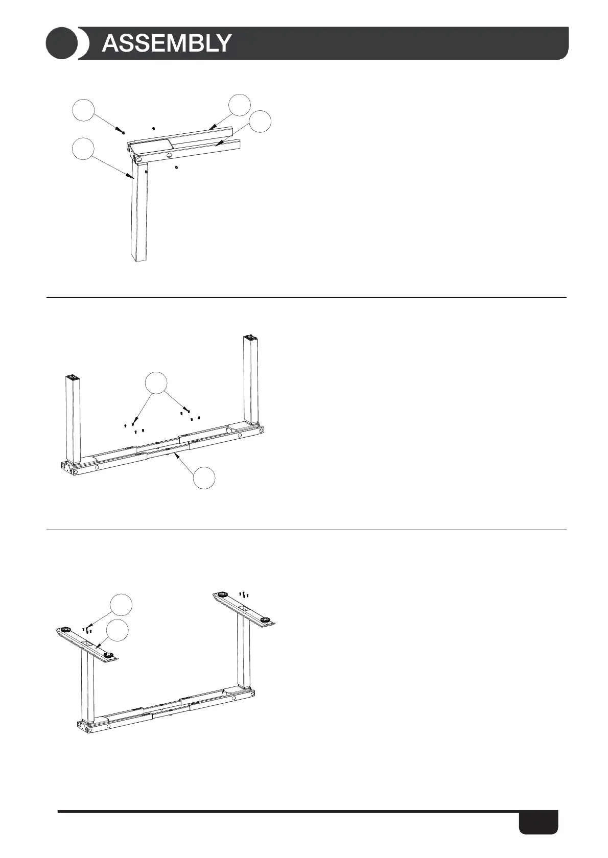 Slide the two (2) center rail (part 3) into the two (2) frame ends ensuring: