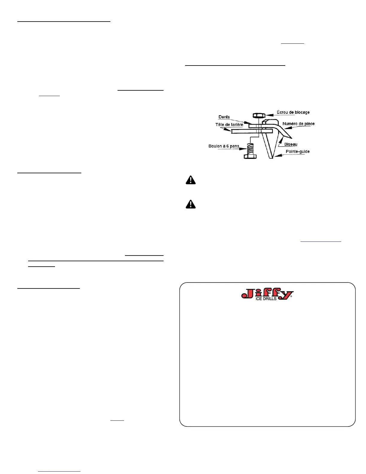 lame de la tarière. Reposez-le en fin de travail.