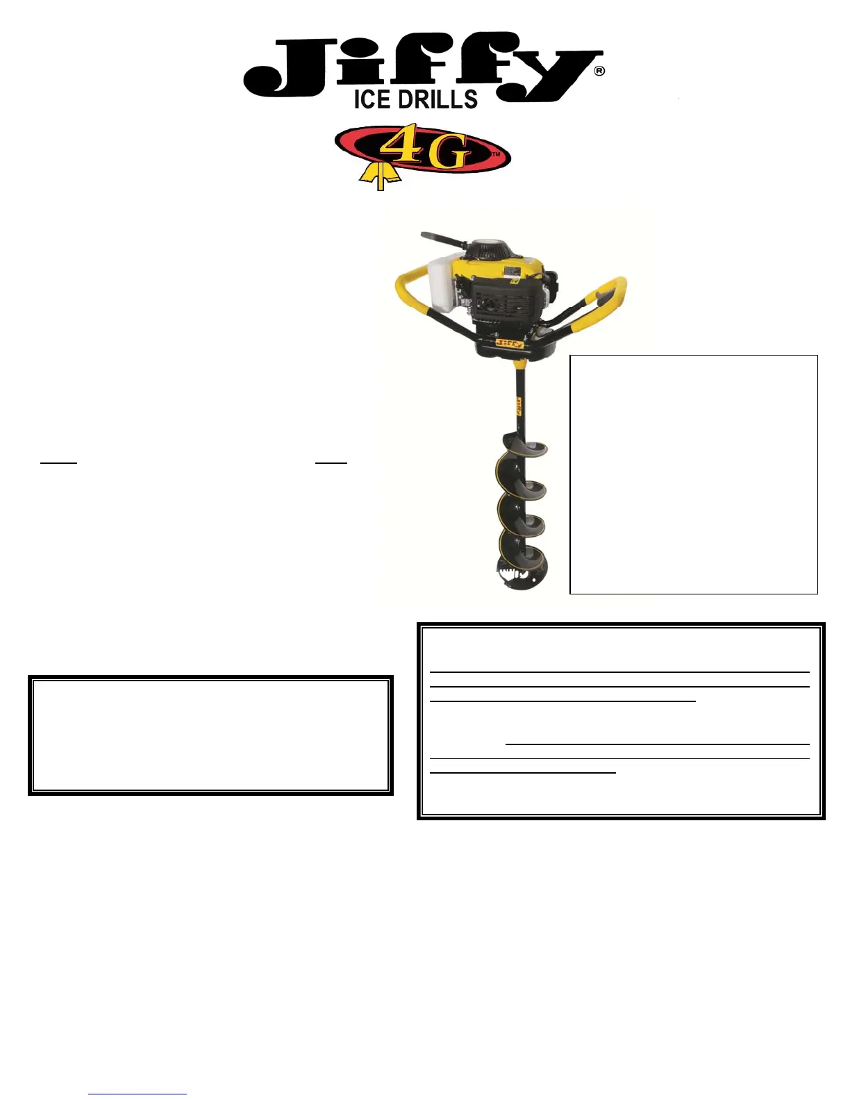 Nous vous remercions d’avoir acheté une tarière à glace Jiffy. En