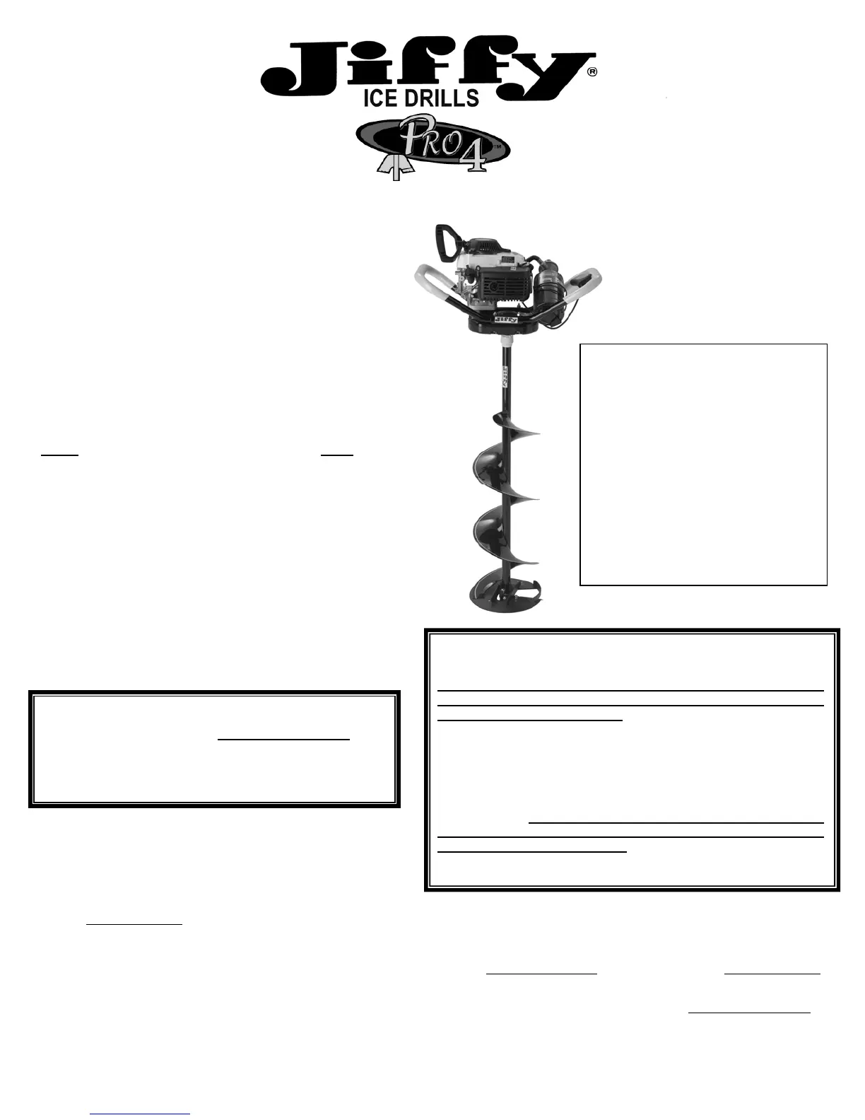 Nous vous remercions d’avoir acheté une tarière à glace Jiffy. En