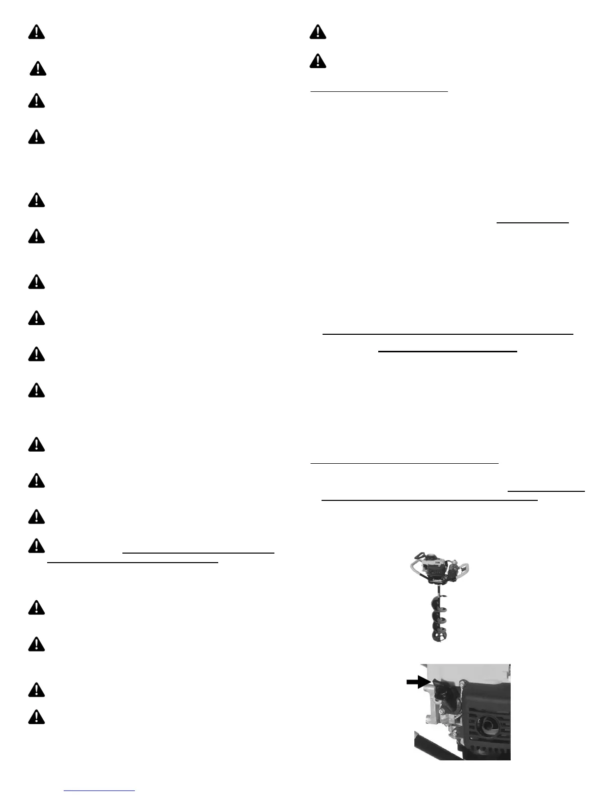 1. La tarière à glace PRO4 est entraînée par un moteur 4 temps. Avant de