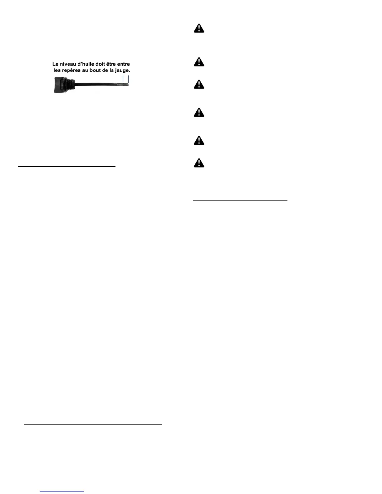 niveau. Remarque : Le niveau de l’huile se vérifie avec le