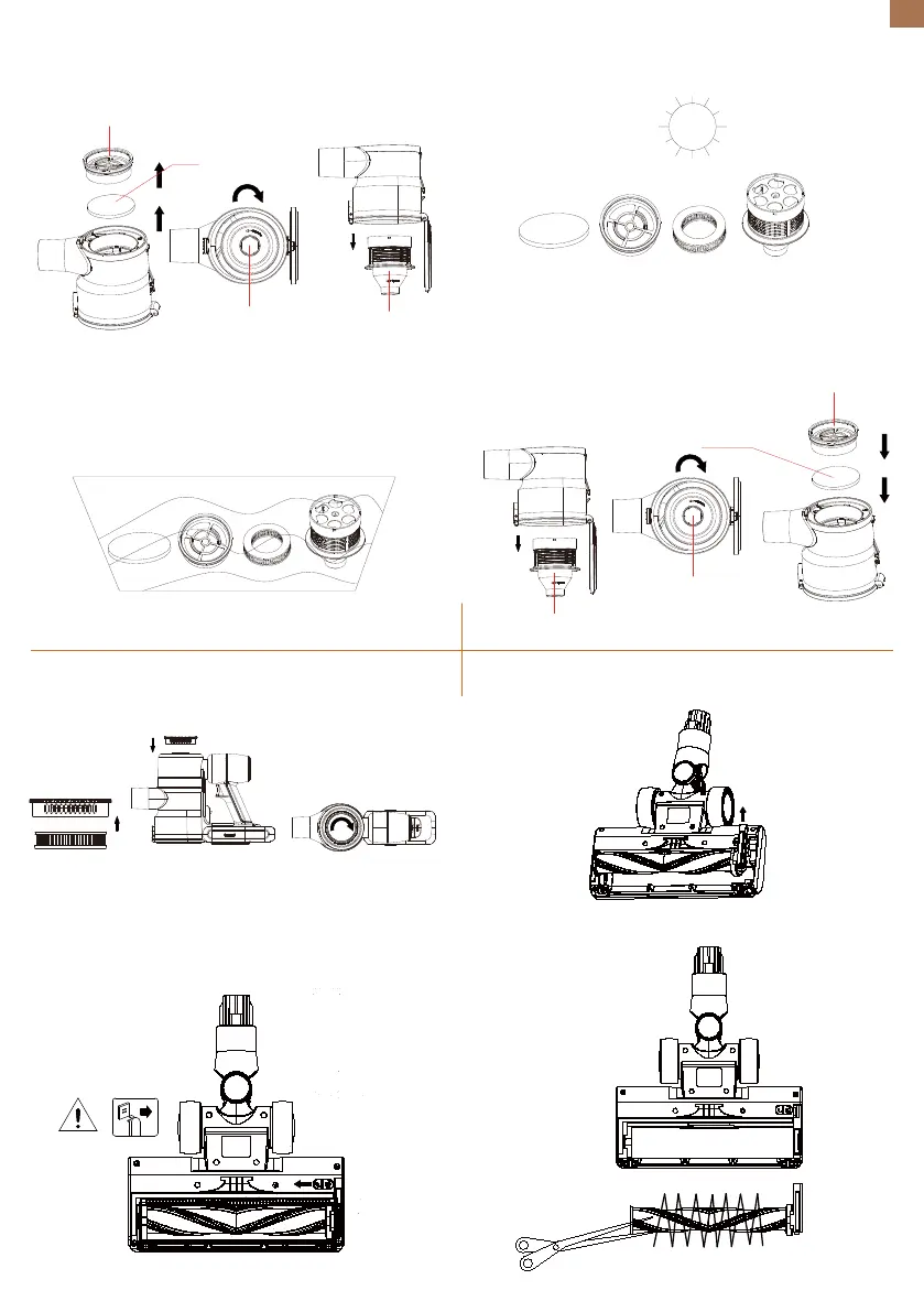 d) Lavez le filtre HEPA, le filtre pré-moteur, l'éponge et