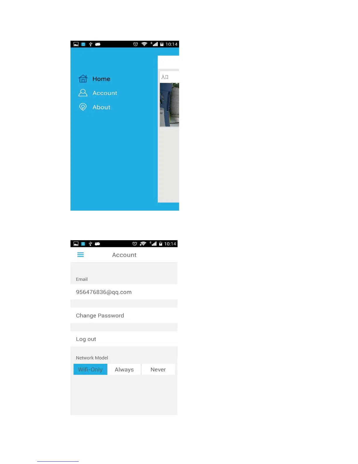 A) Account: Log out, change password and choose network model ˄Wifi-Only˖Live-monitor