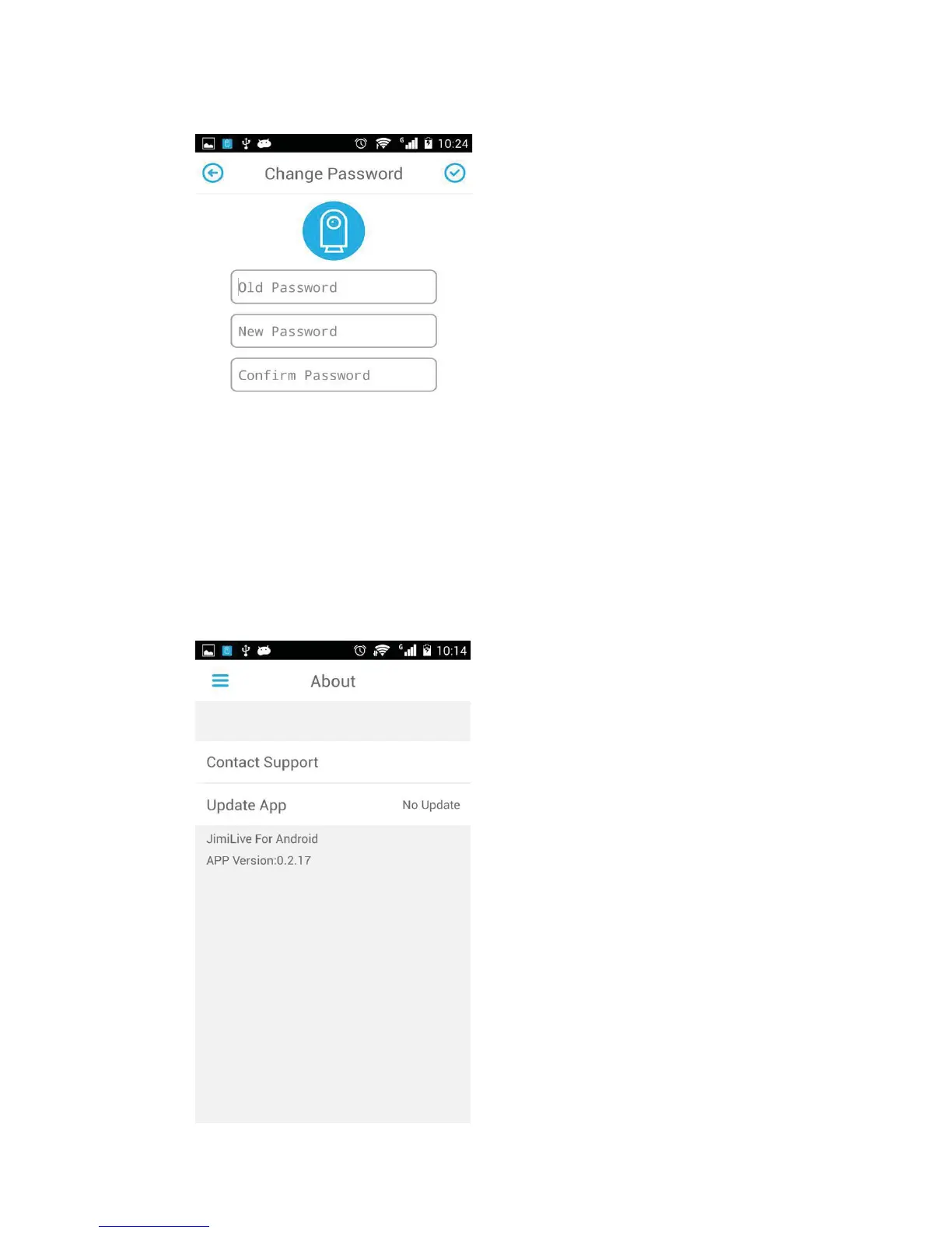 Jimi JH08 - Change Password; About and Updates