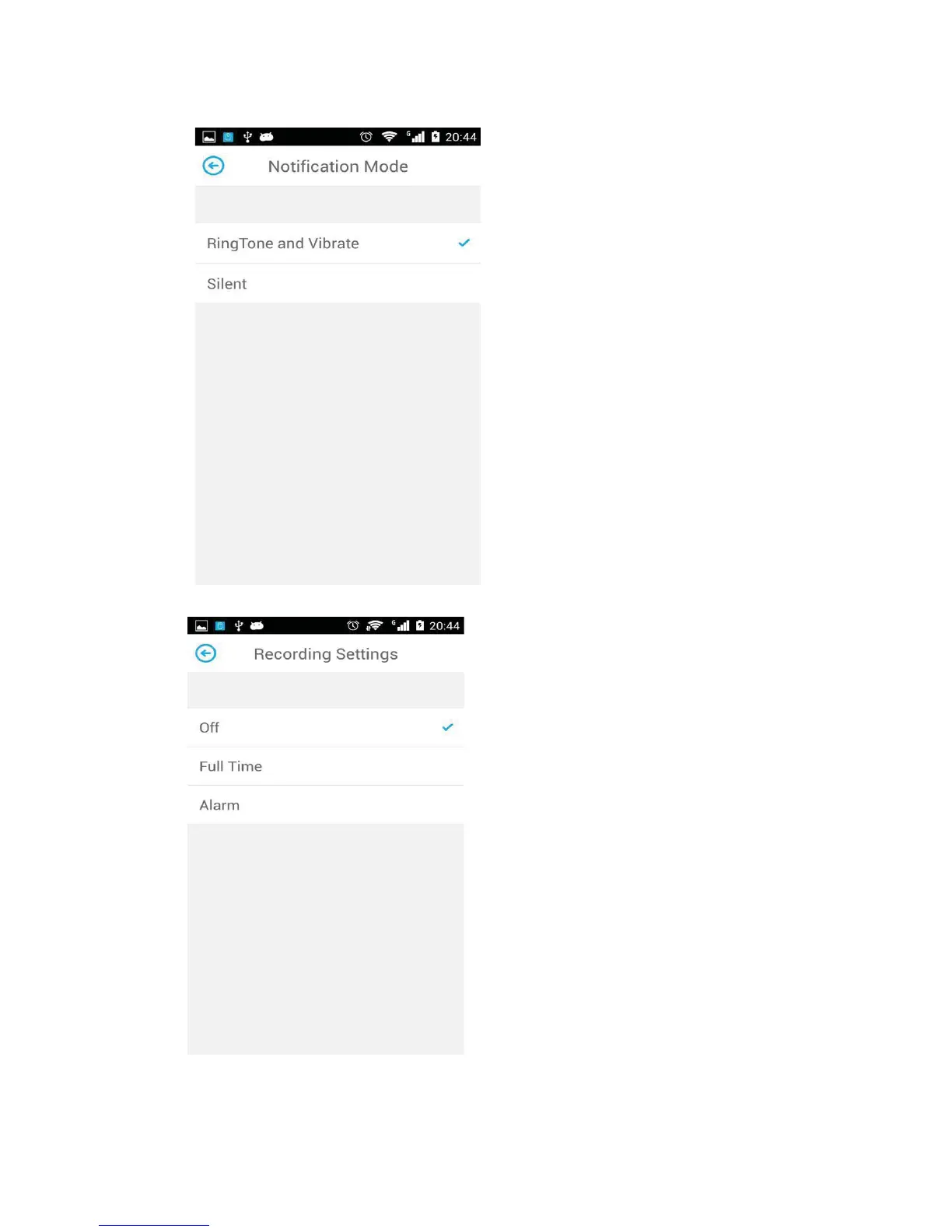 Jimi JH08 - Notification Mode; Recording Settings