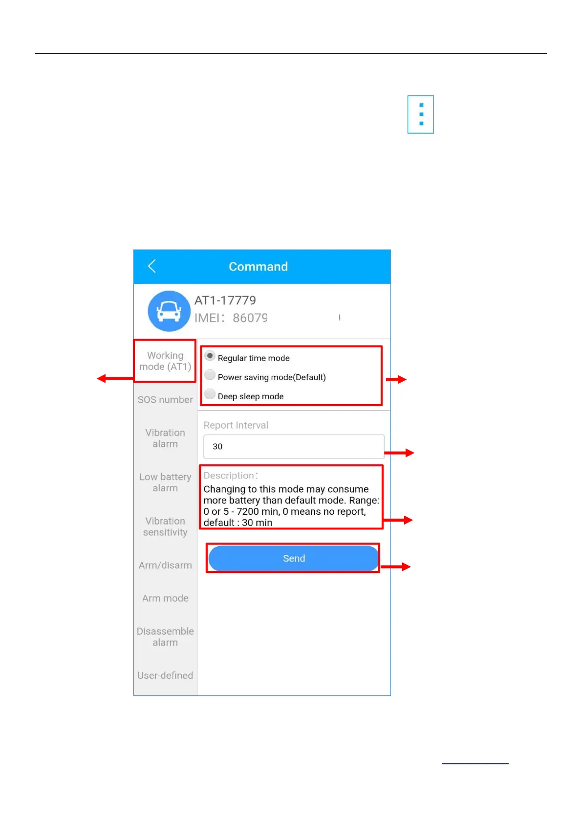 Go to ‘Command’ page to set a work mode based on different