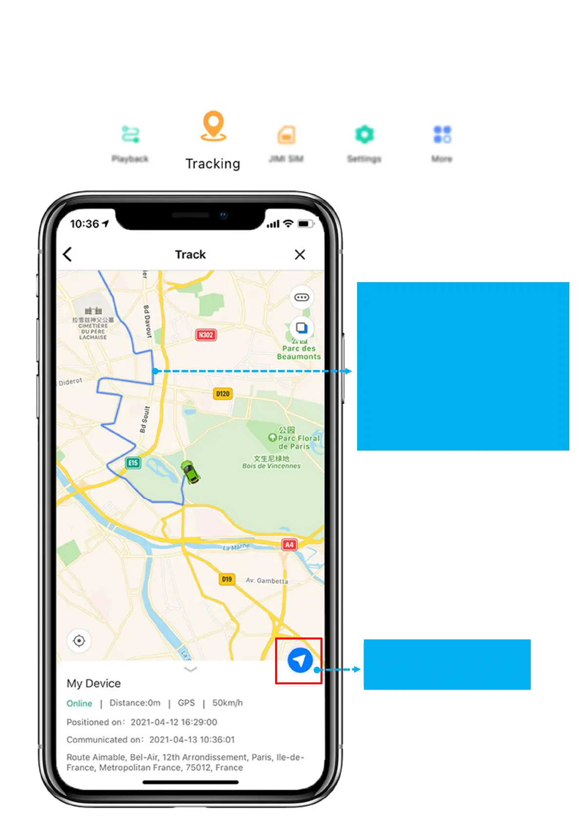 - Tapping “Tracking” button to enter the Track page.