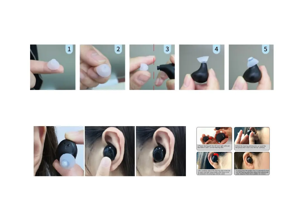 Select a suitable earplug, open and rotate the hearing aid into the head of device.