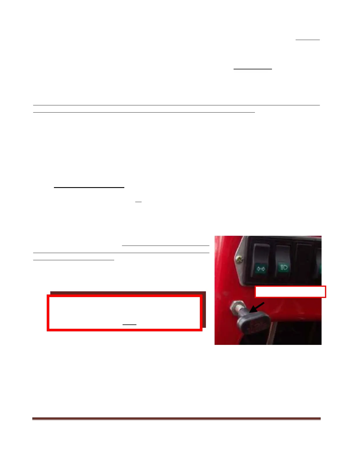 After the tractor starts, let it run in neutral with the parking brake ON for at least 5 minutes to warm up (see
