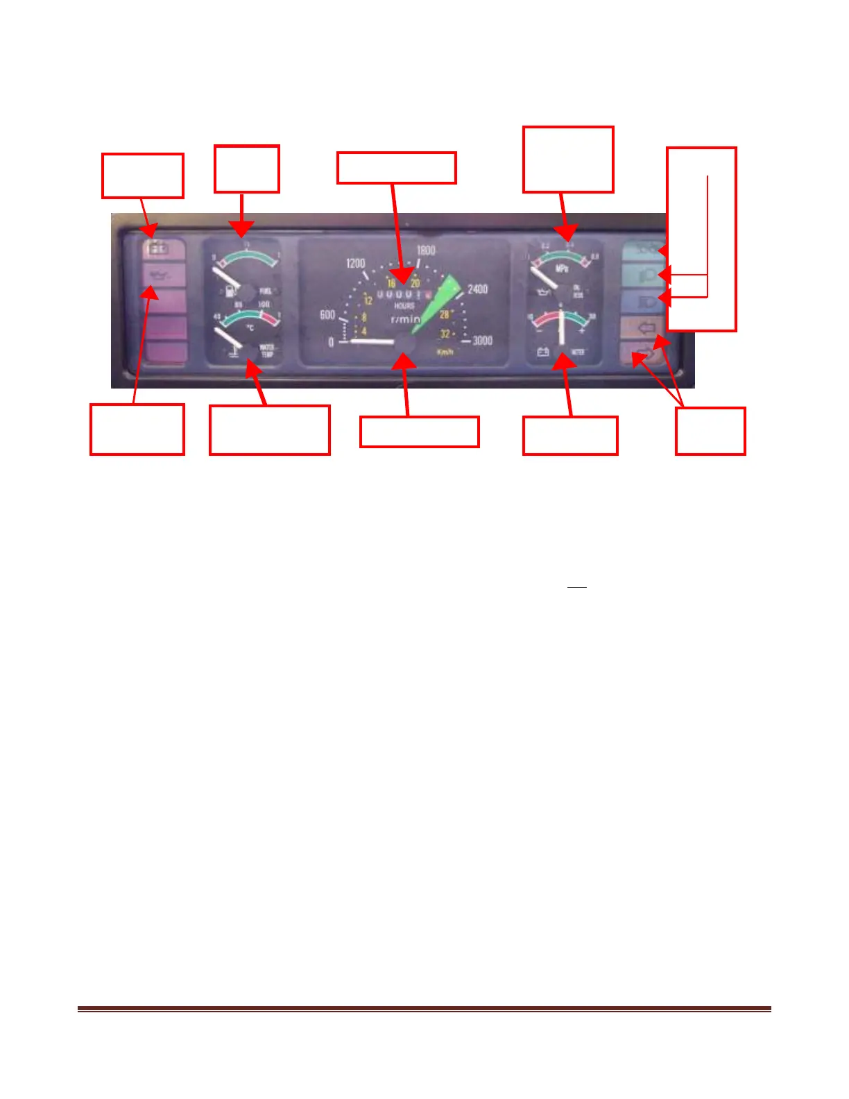 15) Oil pressure gage: This indicates the oil pressure of the engine oil. The normal range is 0.2-0.4 MPa.
