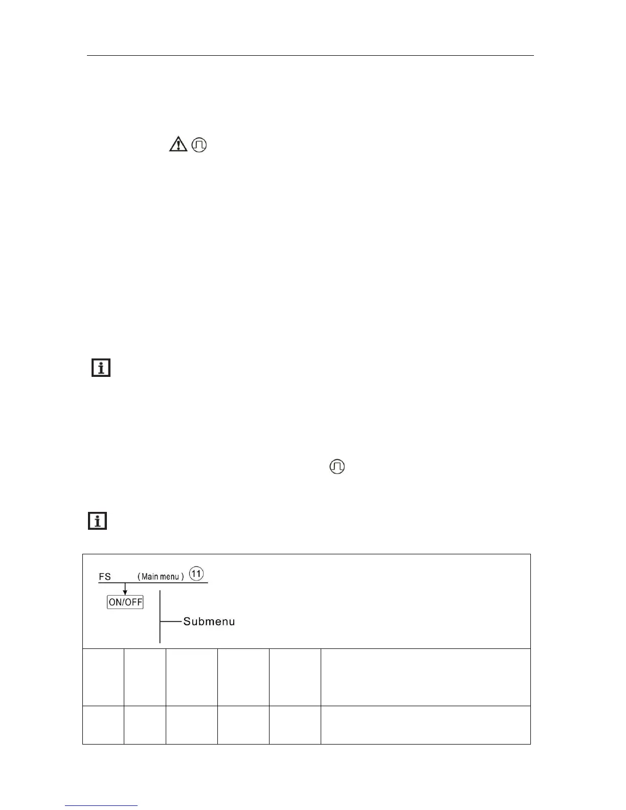 “ SET” button for 3 seconds to switch-off FS function, and after the fault is removed, then