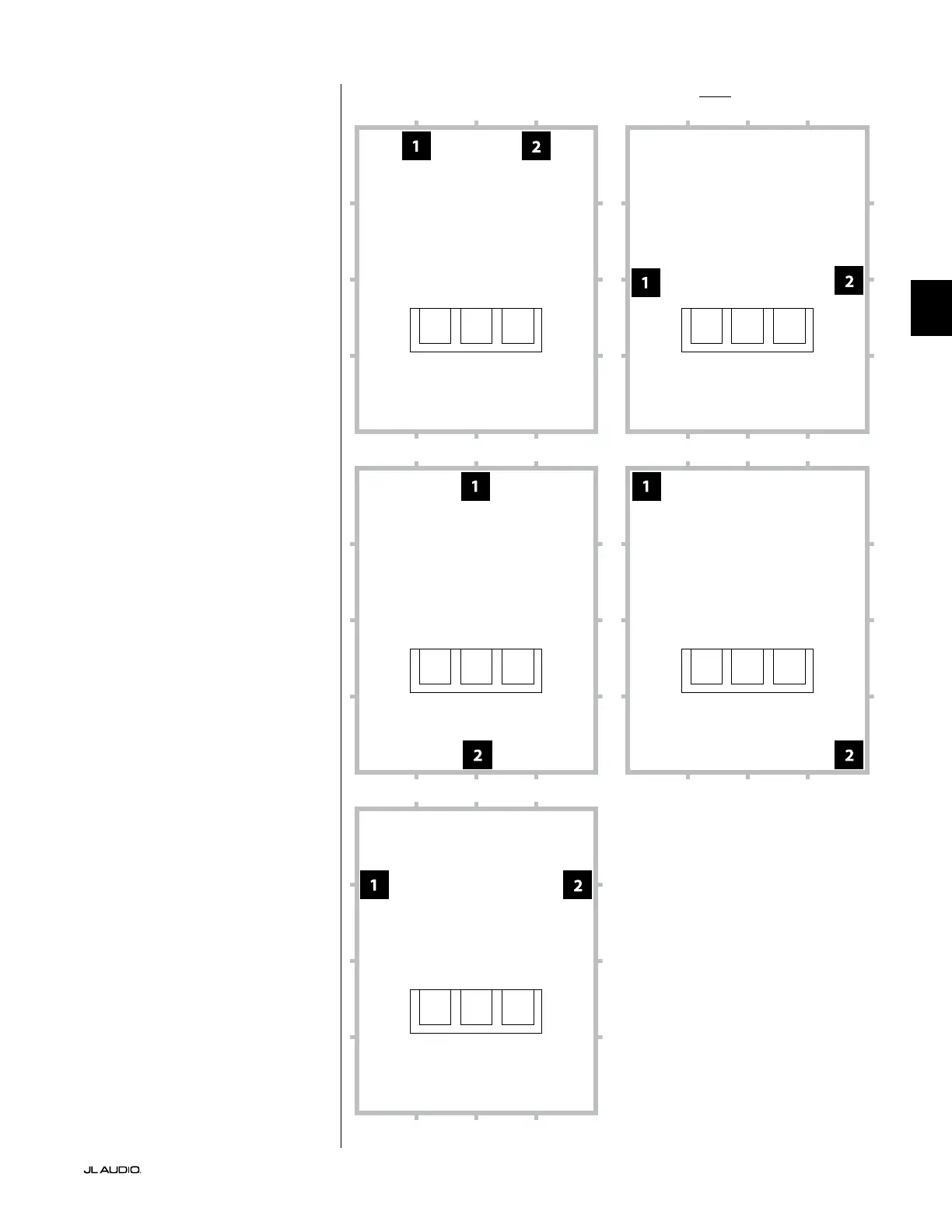 Empfohlene Subwoofer-Platzierungsoptionen für zwei E-SubsVerwendung von zwei E-Subs