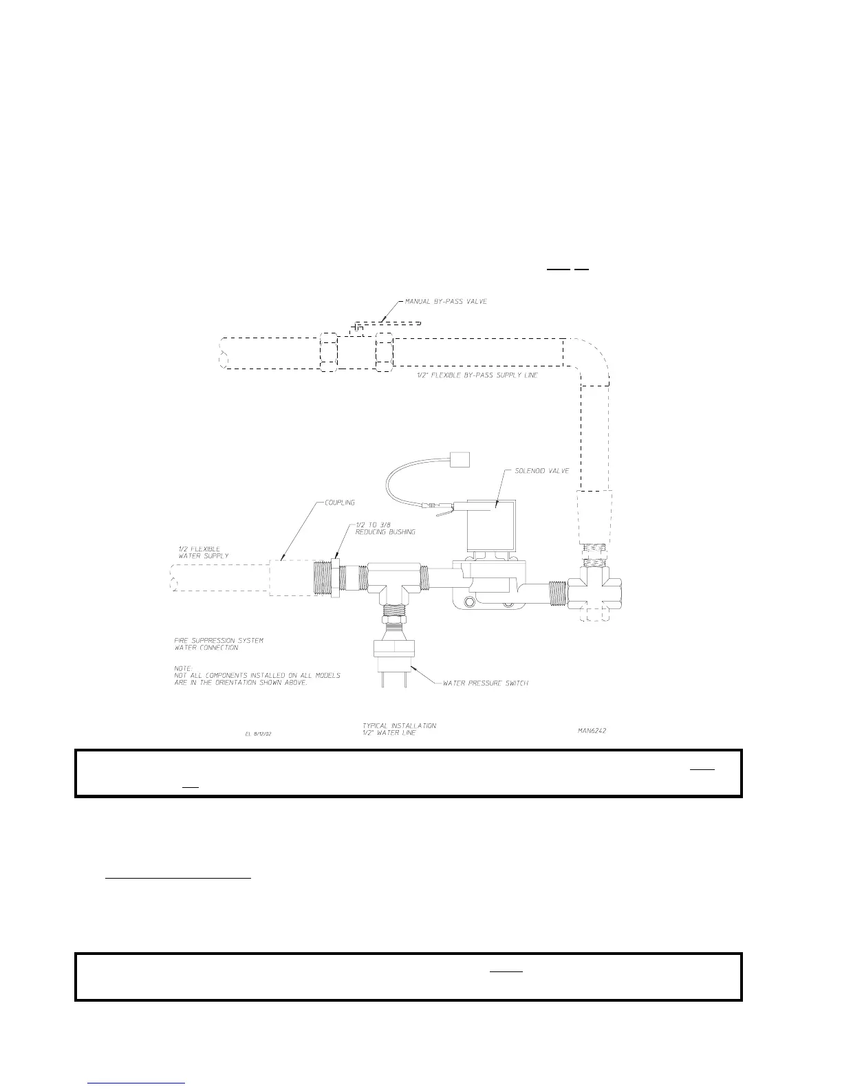 WARNING: If the water in the supply line or water solenoid valve freezes, the S.A.F.E. system will