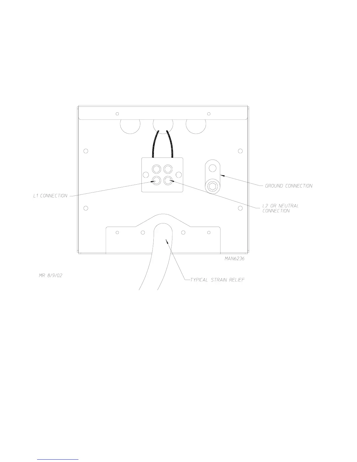 to the service breaker panel. In both cases, a strain relief must be installed where the wiring enters