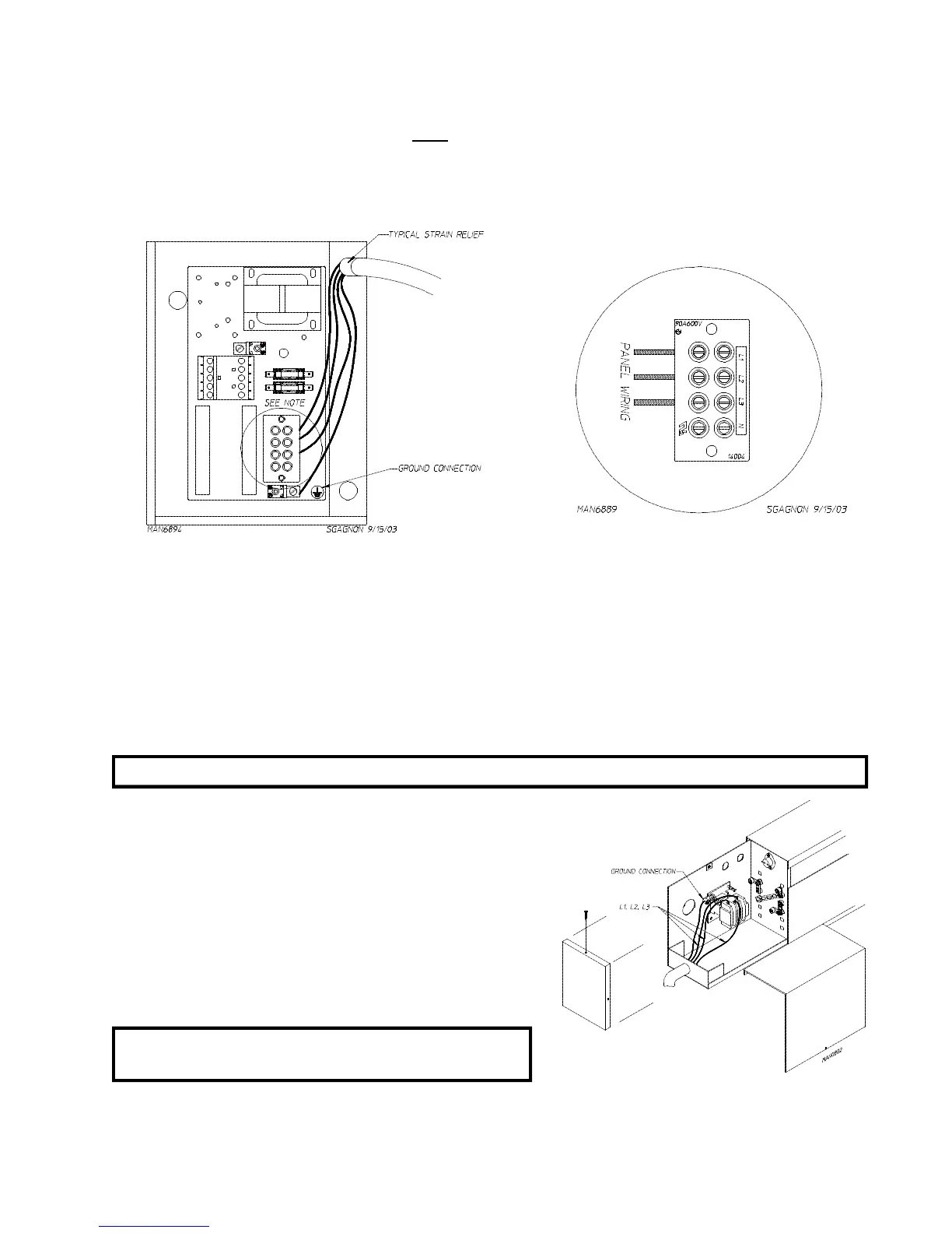 The only electrical input connections to the dryer are the 3-phase (3ø) power leads (L1, L2, L3, and