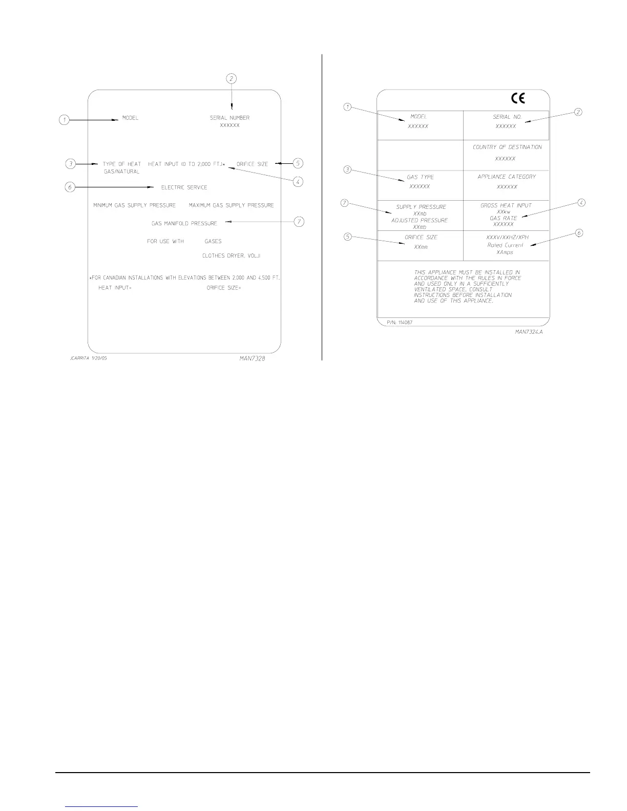 5. Orifice Size (For Gas Dryers) – Gives the number drill size used.