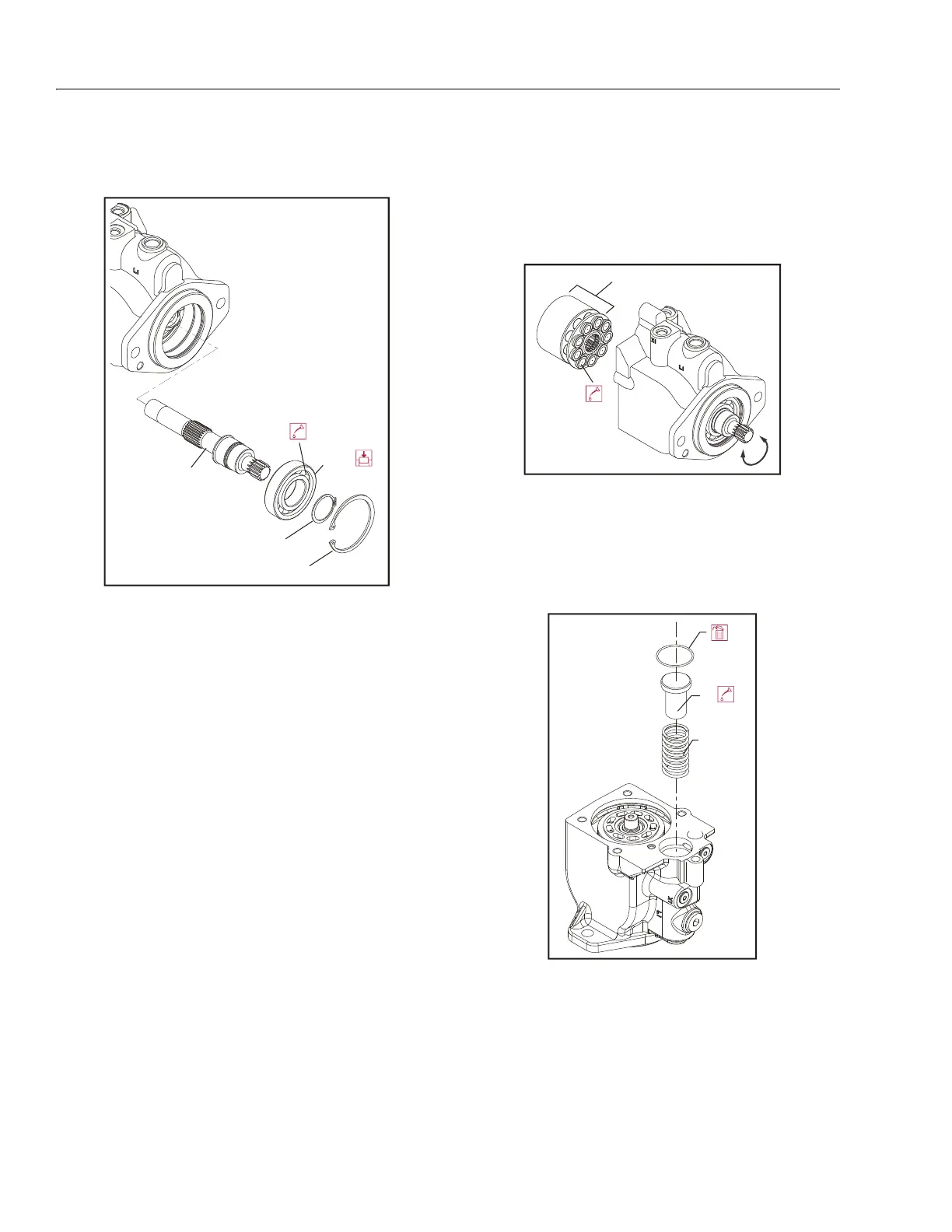 verify the cylinder kit, swashplate, journal bearings, and