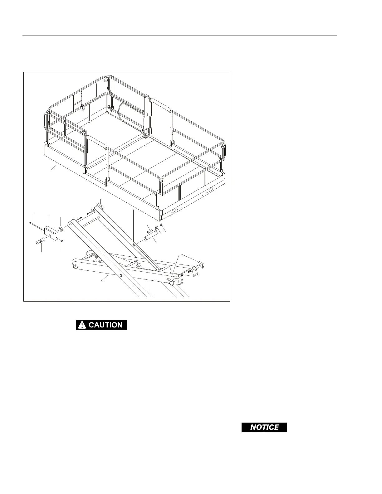 NEVER WORK UNDER ELEVATED PLATFORM WITHOUT FIRST PROPERLY SUP-