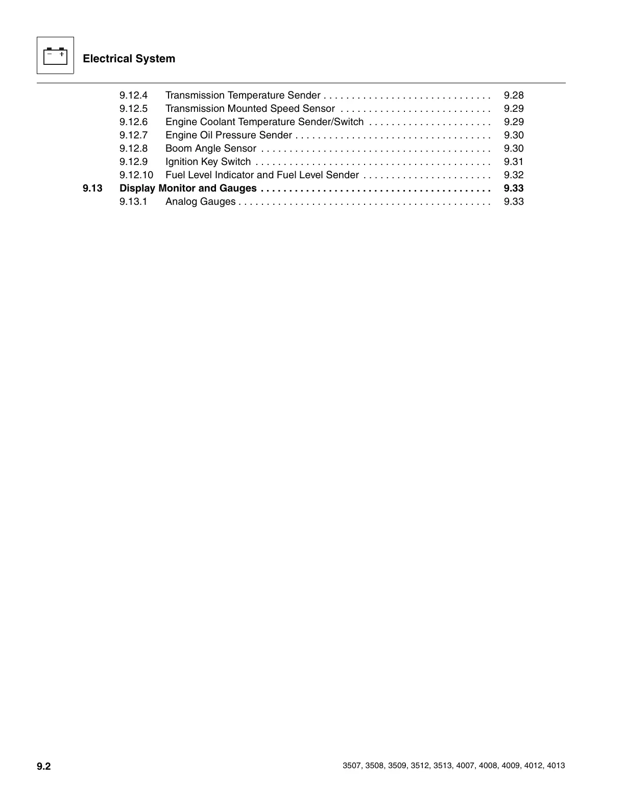 9.12.8 Boom Angle Sensor . . . . . . . . . . . . . . . . . . . . . . . . . . . . . . . . . . . . . . . . . 9.30