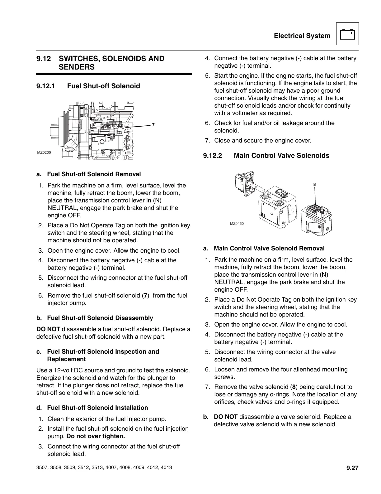 DO NOT disassemble a fuel shut-off solenoid. Replace a