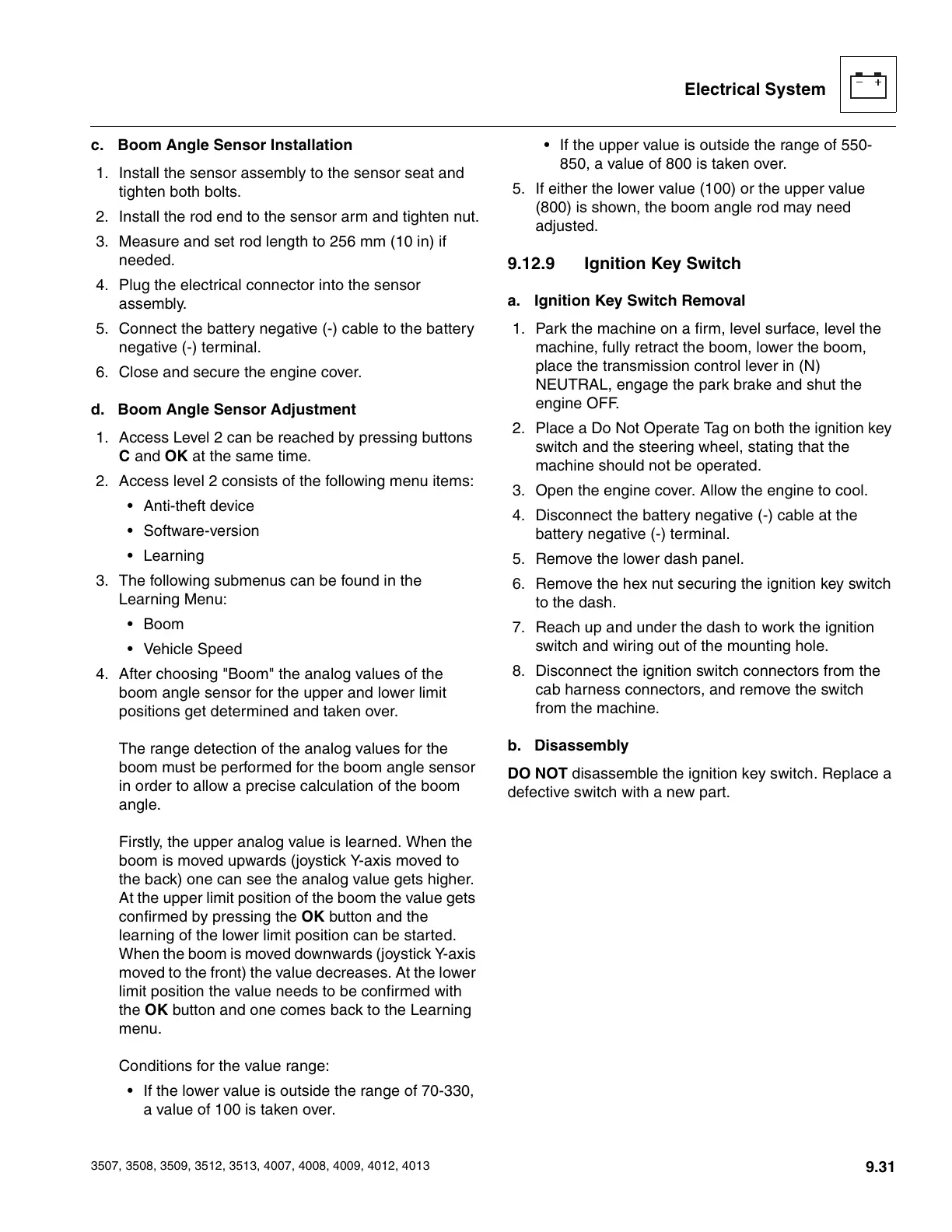 d. Boom Angle Sensor Adjustment