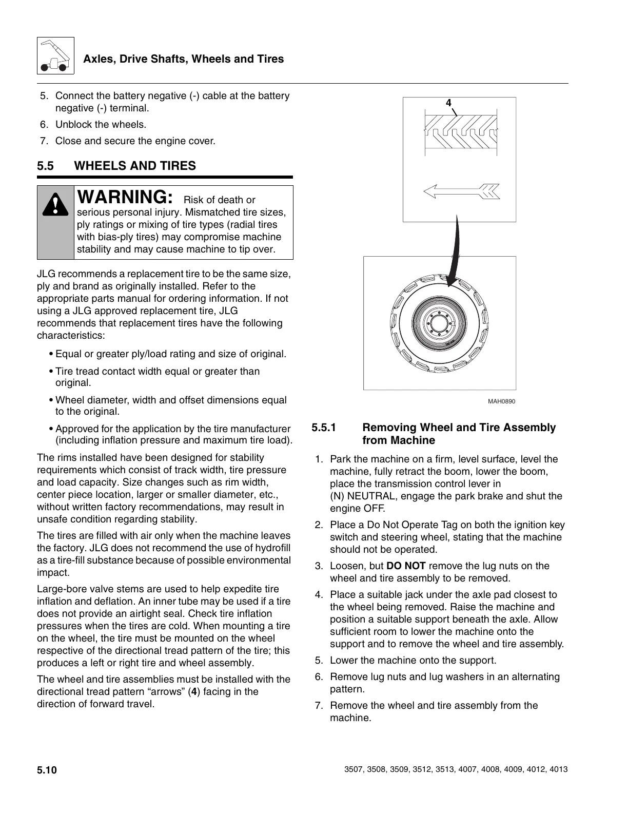 5.5.1 Removing Wheel and Tire Assembly