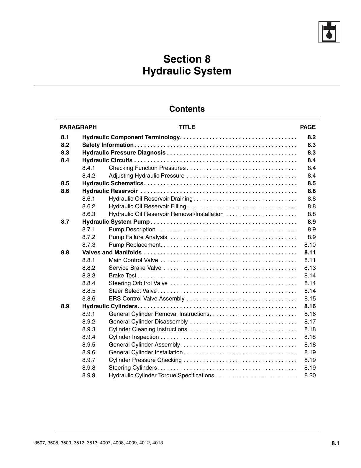 8.9 Hydraulic Cylinders. . . . . . . . . . . . . . . . . . . . . . . . . . . . . . . . . . . . . . . . . . . . . . . . . 8.16