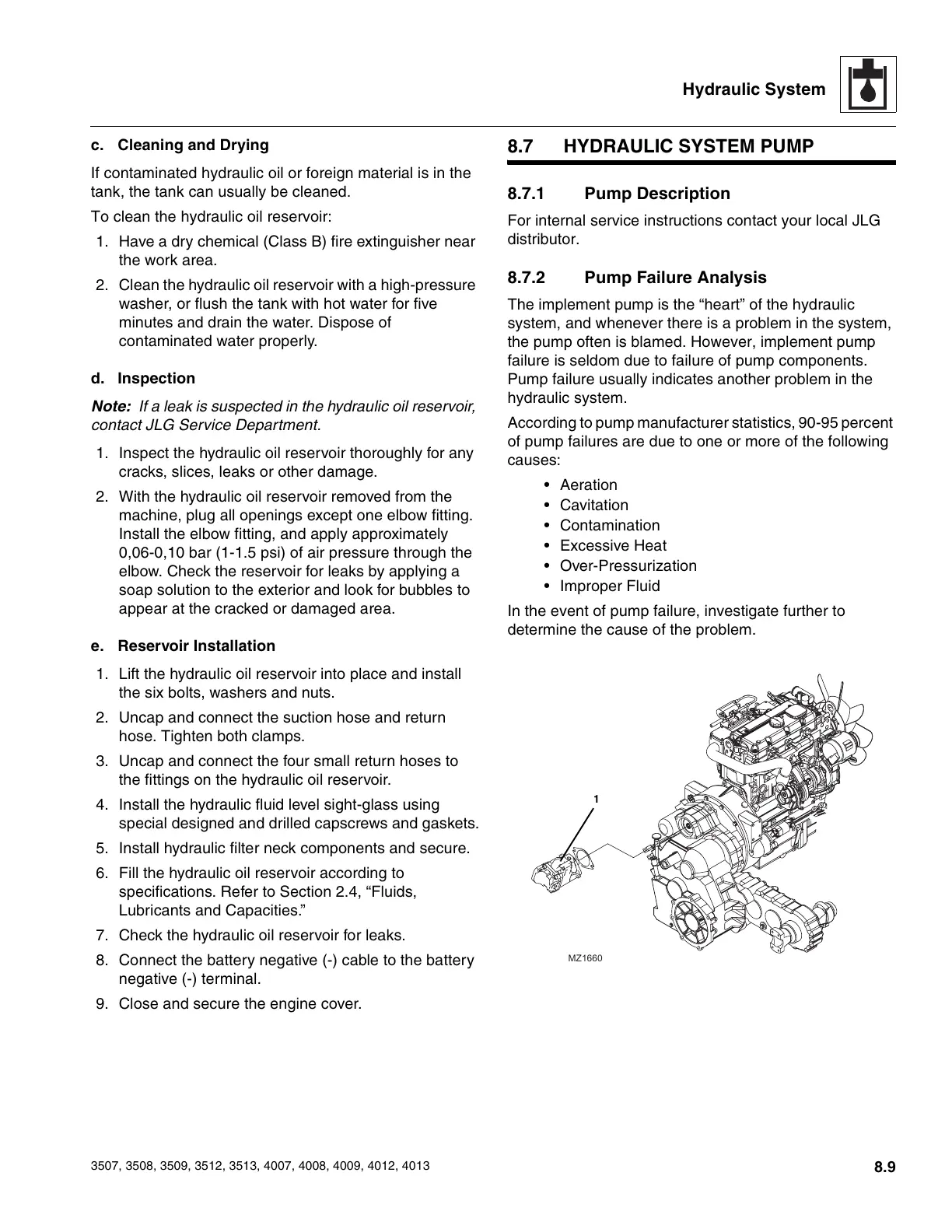 Note: If a leak is suspected in the hydraulic oil reservoir,