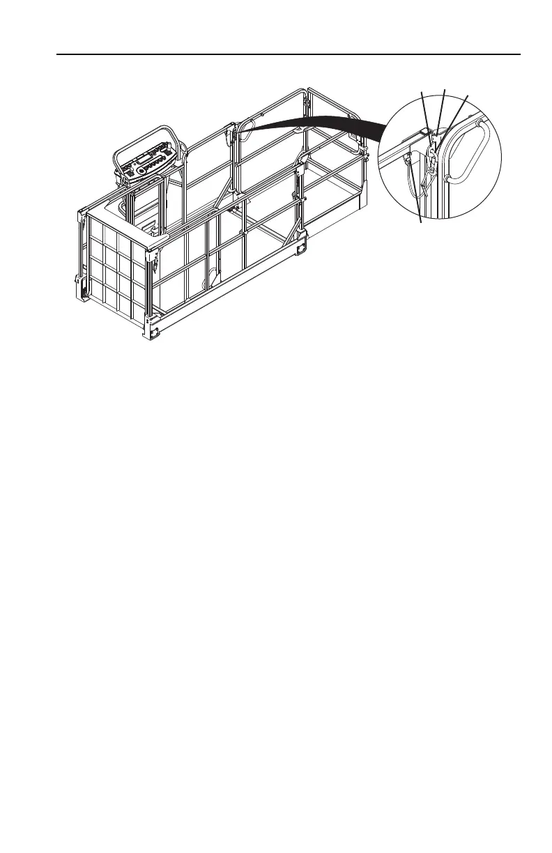 Remove safety latch (5) from stow position (6) and place through support bracket (7).