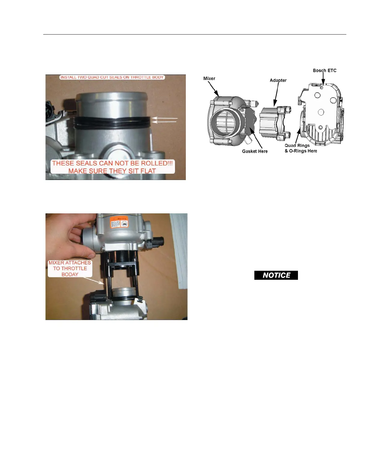 4. Place gasket on intake manifold and attach mixer/throt-