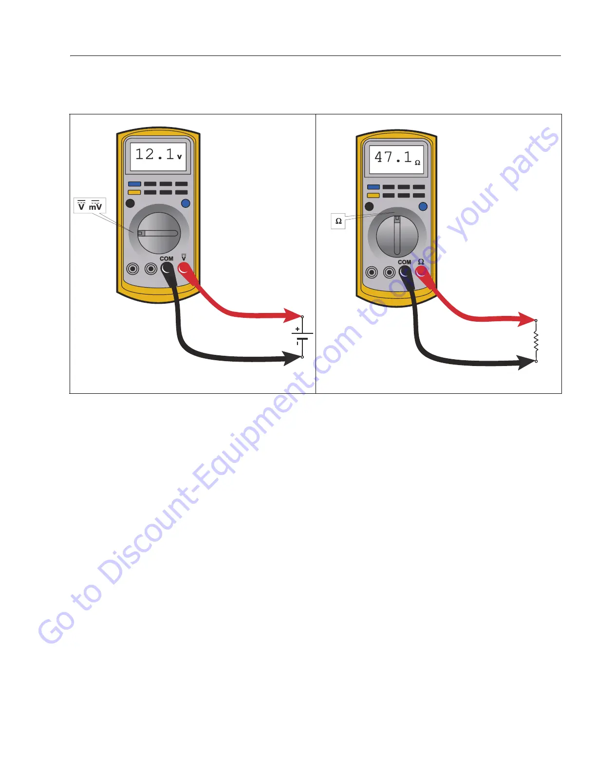 Figure 4-1. Voltage Measurement (DC) Figure 4-2. Resistance Measurement