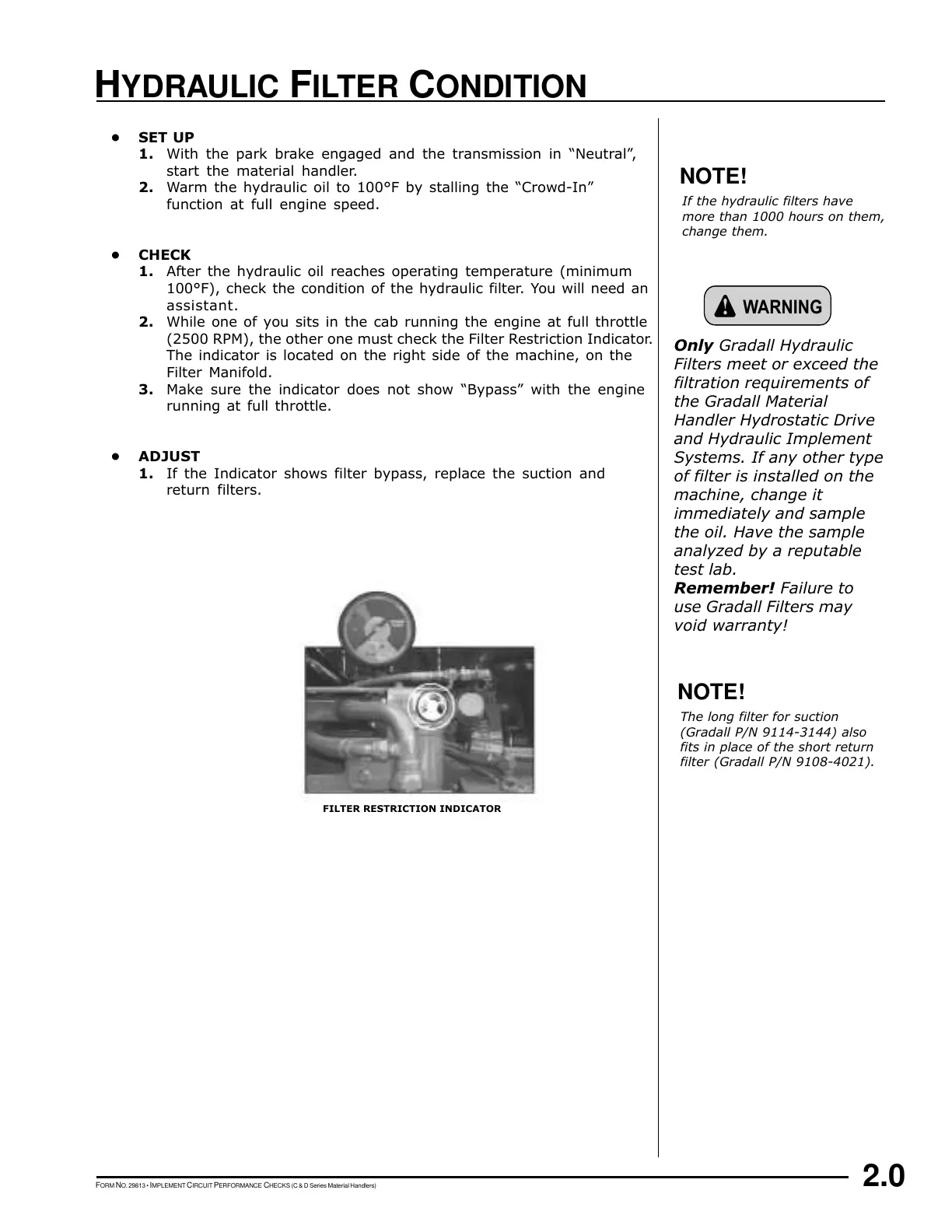 (2500 RPM), the other one must check the Filter Restriction Indicator.