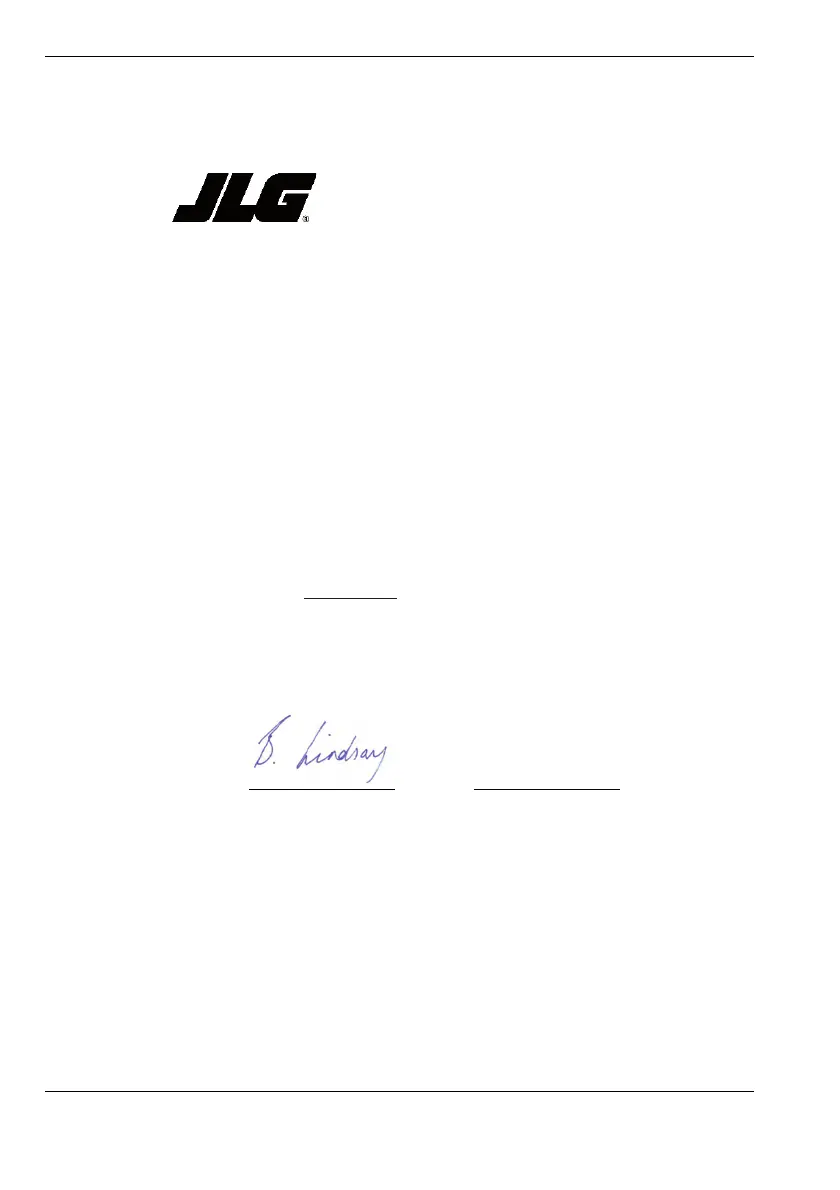 JLG Industries Inc. hereby declares that the above mentioned machine