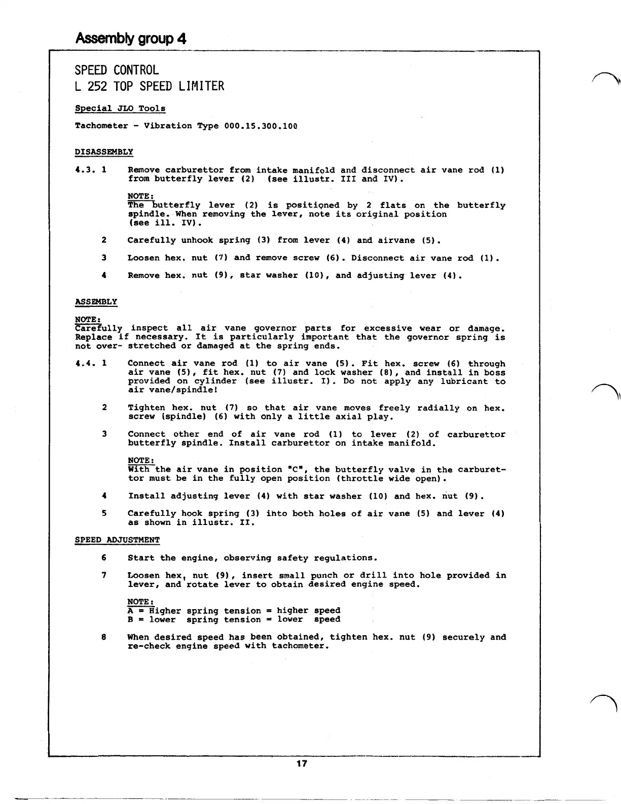 Replace if necessary. It is particularly important that the governor spring is