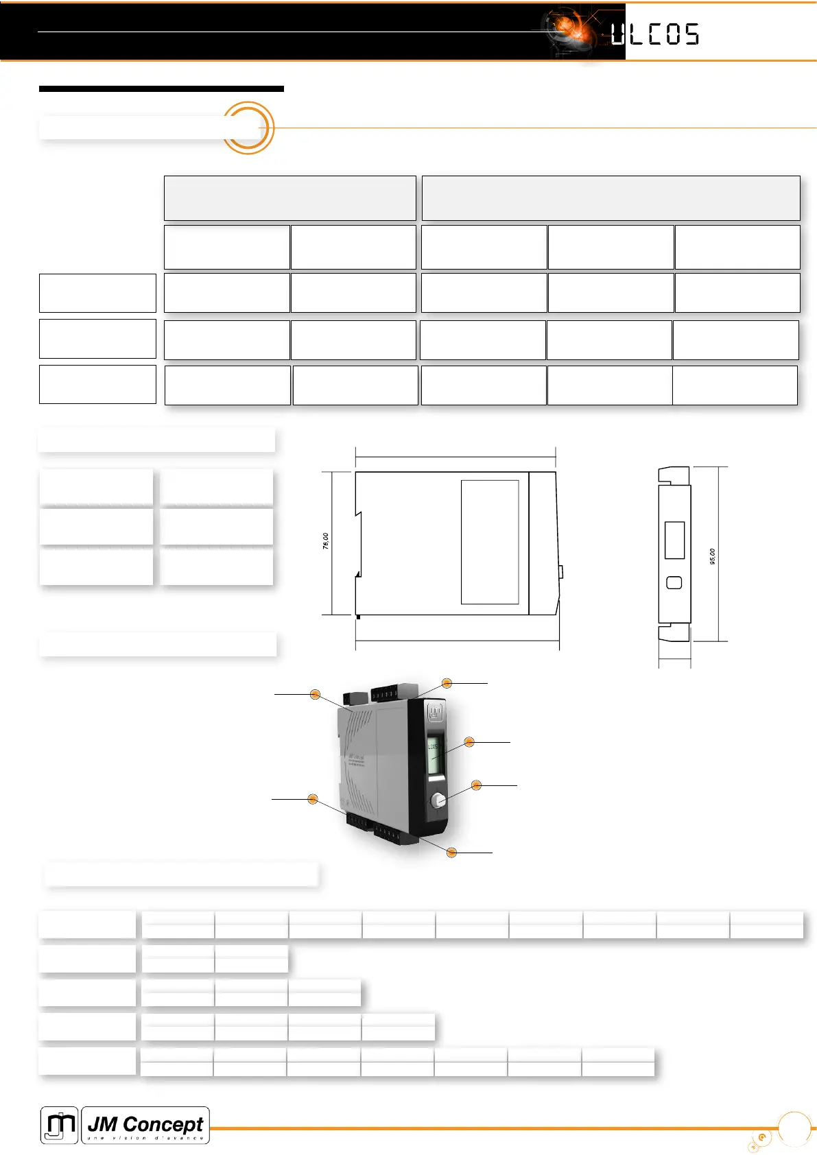 JM Concept ULCOS 920D2 - Product References and Specifications; ULCOS Device Model Overview; Physical Dimensions and Connections; Factory Default Configuration Settings