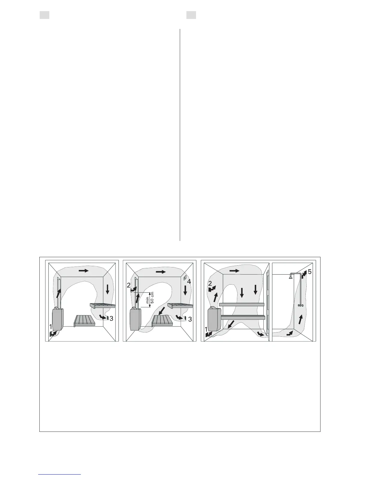 minimum height of 50 cm above the heater. The