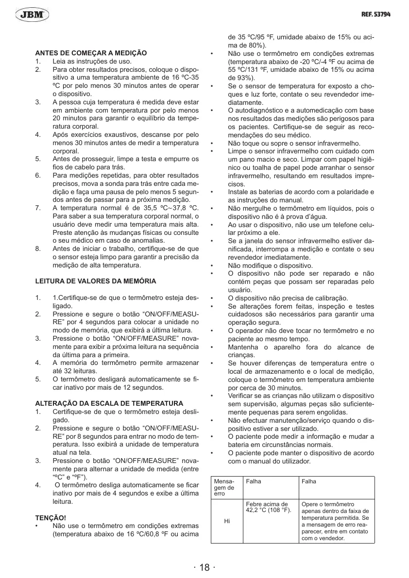 5. O termômetro desligará automaticamente se -