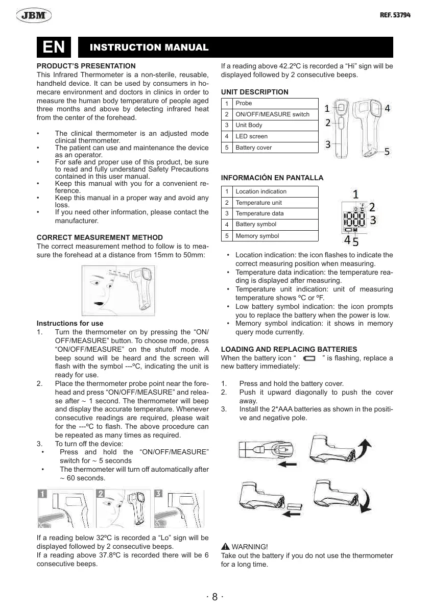 • The thermometer will turn o automatically after