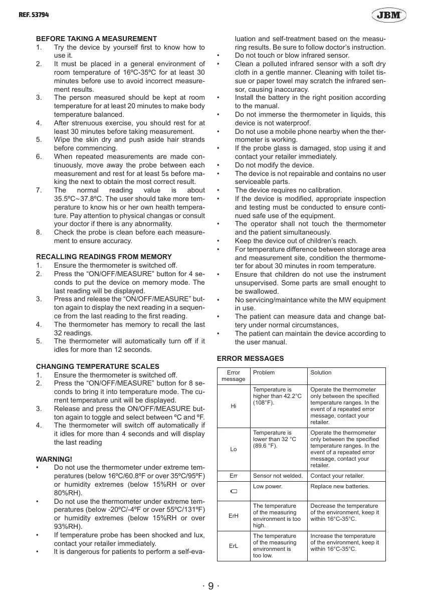 35.5ºC∼37.8ºC. The user should take more tem-