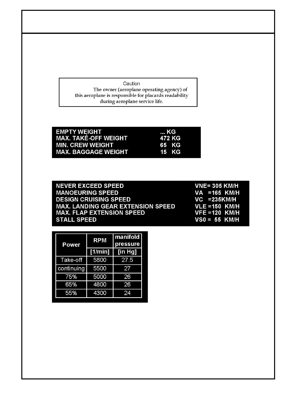 JMB VL-3E-1 Evolution - Placard Information