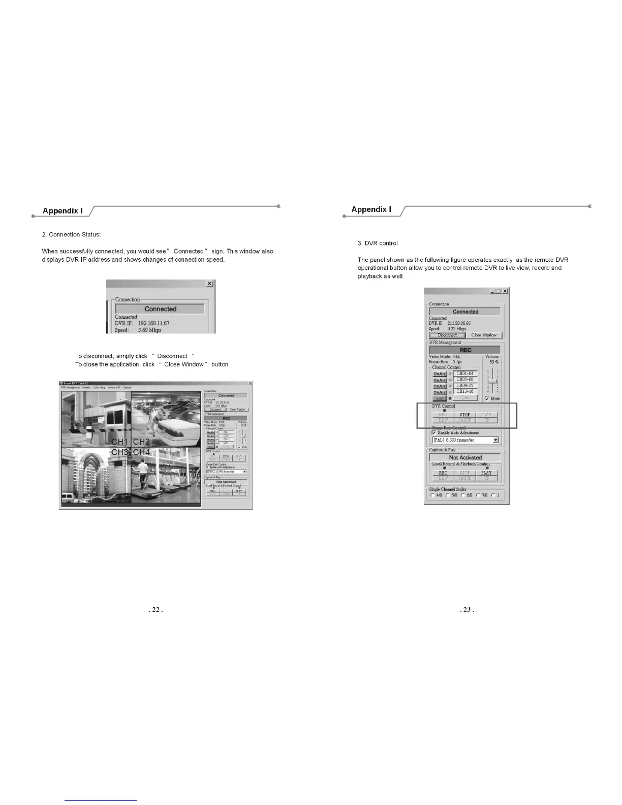 JMK JDR-913 - Appendix I - PC Client Connection Status; Monitoring Connection Status; Remote DVR Control Panel Operations
