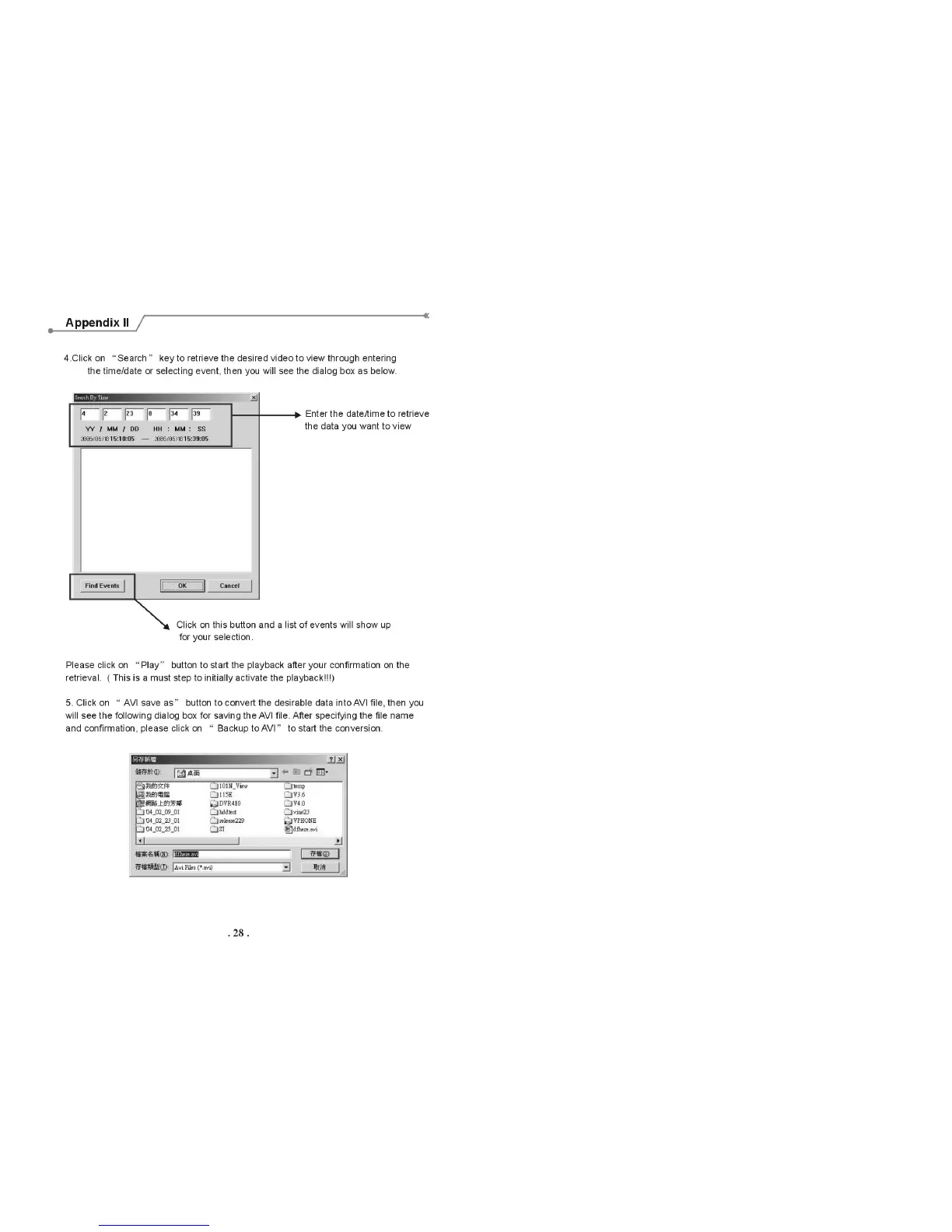 JMK JDR-913 - Appendix II - PC Viewer Software Usage; Searching Video Recordings via Viewer; Converting Viewer Data to AVI