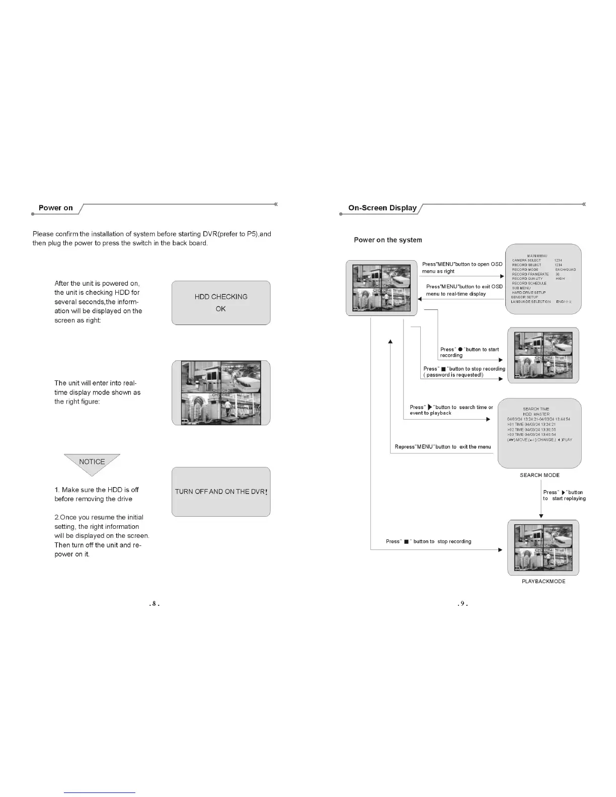 JMK JDR-913 - System Power and Display; Power On and System Check; On-Screen Display Interface