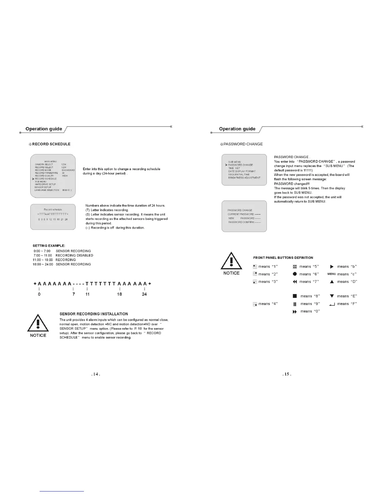 JMK JDR-913 - Operation Guide - Schedules and Security; Setting Up Recording Schedules; Changing System Password; Front Panel Button Functions