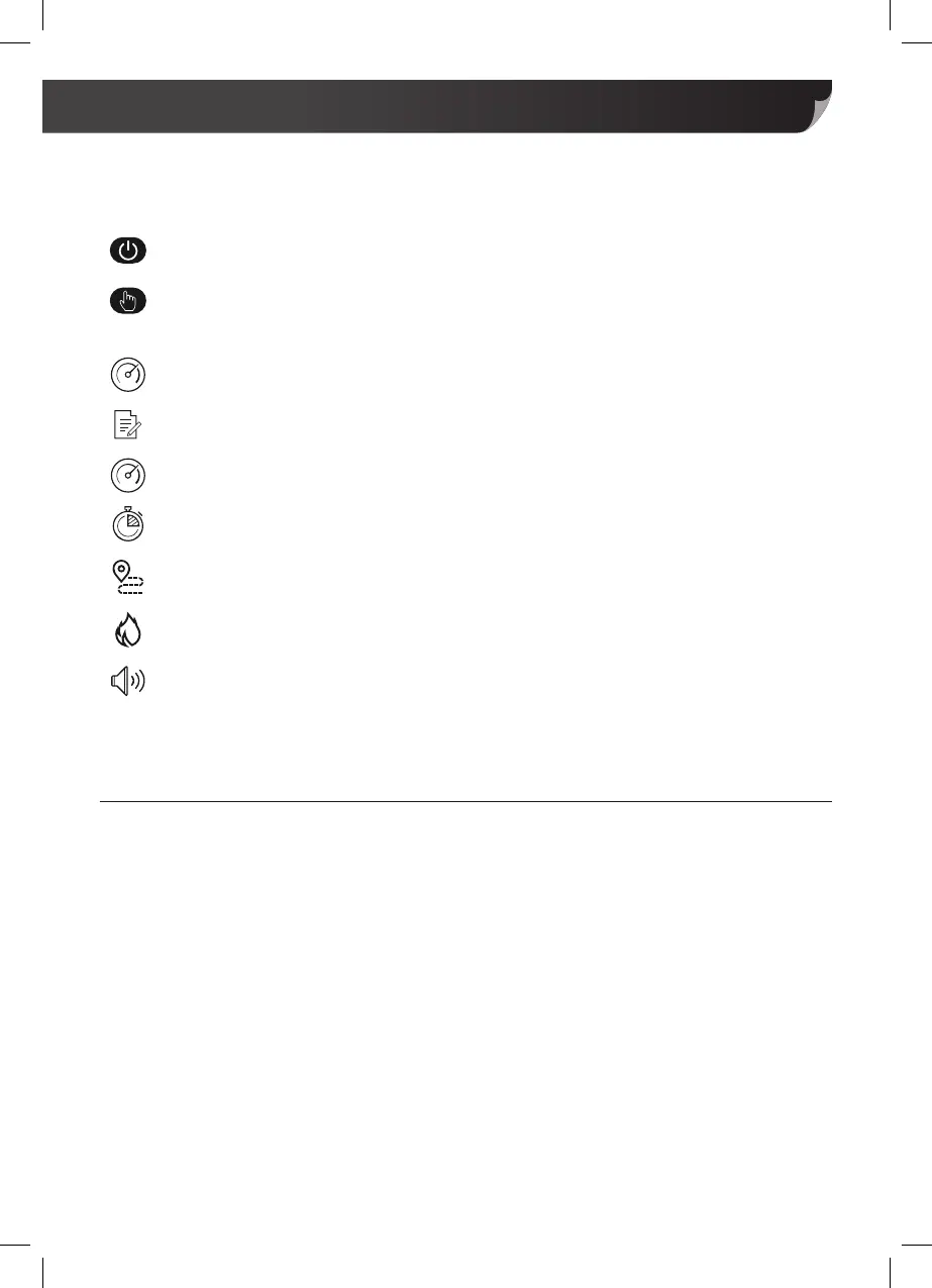 Mode: (While stationary) To select programme and timer. (while running) Displays