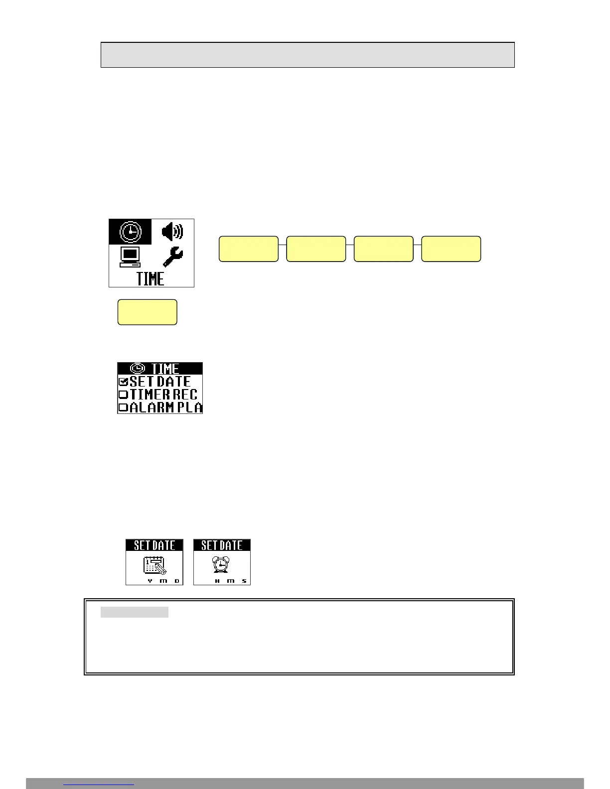 - ENTER INTO TIME MENU AND SELECT “SET DATE”.