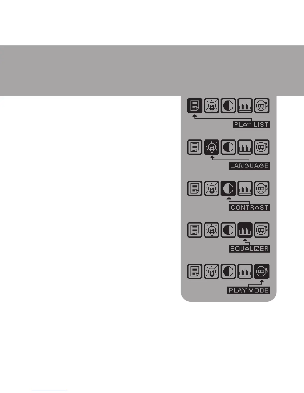LANGUAGE, CONSTRAST, EQUALIZER