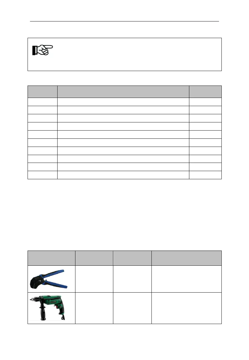The following tools will be needed during inverter installation and wire